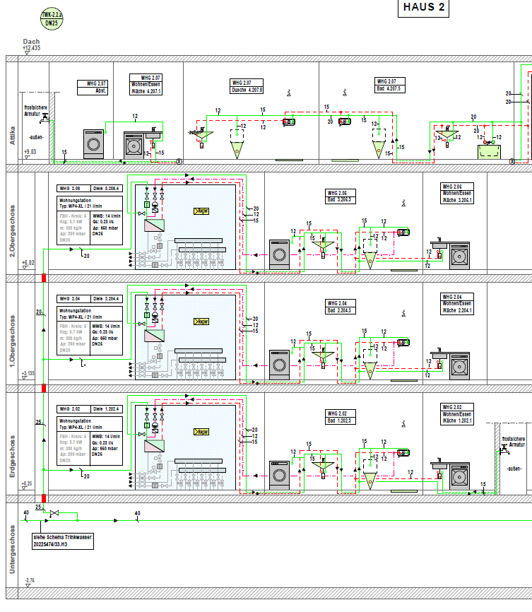 | Installierte Heizung Verbraucher | ca. 2.050 m² Fußbodenheizung über 25 Wohnungsstationen |